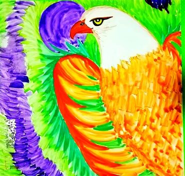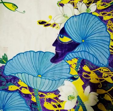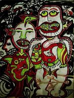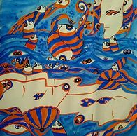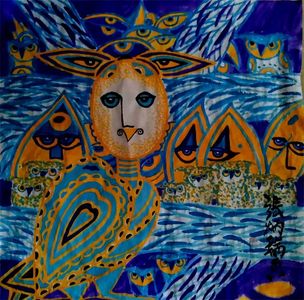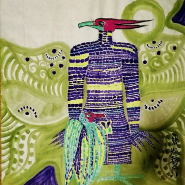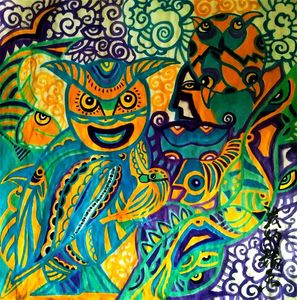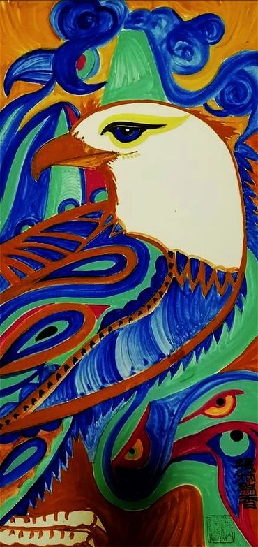 This work is a work of contemporary art. It is a combination of figurative and transfigured abstraction. What the work presents is the spiritual freedom of human beings.