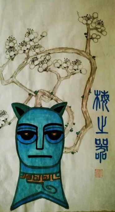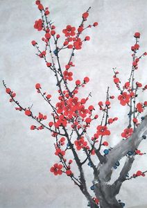 This is a traditional Chinese painting, one of the four gentlemen plum blossom. Plum blossom in late winter and early spring, with the quality of cold iron bone.