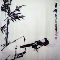 This is a traditional Chinese ink painting. Xique and Wind Bamboo.